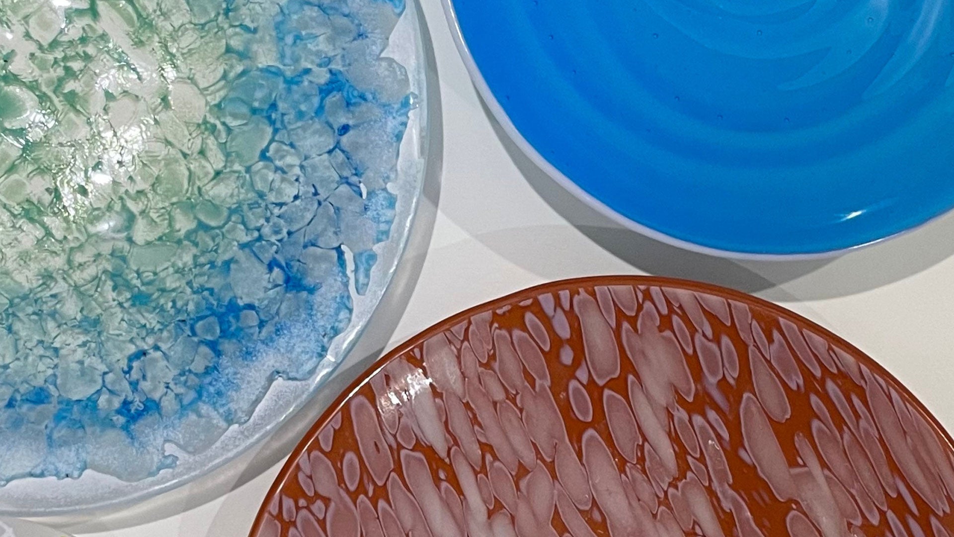 To complement this stunning collection of glass beads, we also offer one-off kiln glass homewares.